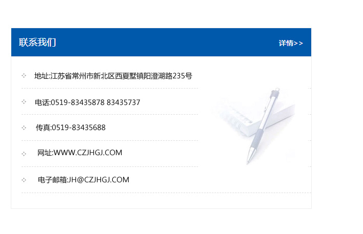 地址:常州市新北區友邦商務大廈1幢16、17層  電話:0519-85101652  傳真:0519-85112595  郵編:213022  網址:www.cz-jiayue_cn.wuxiluolong.com  郵箱:xiajifengaa@163.com